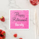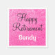 Personlig glam Lycklig Pension napkin med bakgrund av gnistran shock rosa och svartvitt. Du kan enkelt lägga till valfri namn och ändra färg och typsnitt för namn med hjälp av anpassningsalternativet!