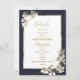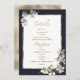 Denna underbara bröllopsinbjudningsdesign har en vacker akvarell vit, marinblå och guld elegant tropisk orkidé floral Bröllopsdetaljer Program inbjudningar som är perfekta för alla klassiska och sofistikerade ceremonier. Denna utsökta eleganta tropiska blomster är perfekt för det lyxiga och stiliga paret. Anpassa denna design med ditt meddelande och personliga information. Alla mönster är tryckta.