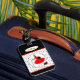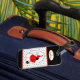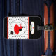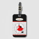 Modern återdesign med glamorös dam och hennes söta skotska hund. Elegant röd och svart design, accentuerad med svart polka dots på vit bakgrund och personlig med ditt namn. Perfektens tillbehör för resor. Gör en underbar gåva till helgdagar, jul, födelsedag, studenten och mer!