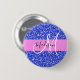 Glam Mörk blått Rosa Glitter Sparkles Namn Monogra Knapp