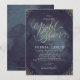 Möhippan Glamor guld med kalligraphy-skrift och guld-punkter konfetterar mörk Nattans vattenfärgbakgrund i blå himmel, shimmer faux metallic guld glitter, effekt, modern, chic, elegant och klassy, perfekt för vintage bröllop eller vinterbröllop på kvällen. Anpassa ditt eget visitkort för bröllopsinbjudan. Se alla matchande delara i samlingen nedan.