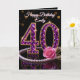 Glam Purple Diamonds Pearls Rose 40th Birthday Kort