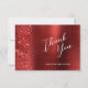 Glam Red Brushed Metal Wedding Flat Thank You Kort
