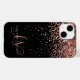 Glam Ro Guld Glitter Elegant Monogram iphone case. Anpassa enkelt den här chicen av trendig-telefonväska med elegant ro guld mousserande glitter mot svart bakgrund. Designen har ditt handskrivna skriptmonogram med söt-snurrar och namn.