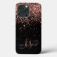 Glam Ro Guld Glitter Elegant Monogram iphone case. Anpassa enkelt den här chicen av trendig-telefonväska med elegant ro guld mousserande glitter mot svart bakgrund. Designen har ditt handskrivna skriptmonogram med söt-snurrar och namn.