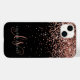 Glam Ro Guld Glitter Elegant Monogram iphone case. Anpassa enkelt den här chicen av trendig-telefonväska med elegant ro guld mousserande glitter mot svart bakgrund. Designen har ditt handskrivna skriptmonogram med söt-snurrar och namn.