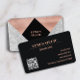 Anpassa enkelt namn och kontakta information och QR-kod för dessa glam-retro-affärskort ro och svarta stilar.