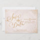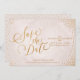 Glamor faux ro guld-handskrift med kalligrafi sparar datumutformningen och ro guld ger konfetti på pastellbakgrund för rosor, söt shimmer faux metallic glitter ro guld glitter, effekt, modern, chic, elegant och klass, perfekt för vintage bröllop eller vår bröllop. Anpassningsbar din egen spara datumkortet för din bröllopsinbjudan. Se alla matchande delarare i denna kalligrafisamling för ro guld i glitter nedan.