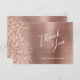 Den här eleganten är ett modernt bröllop-tack som du har ett kort med en faux diamant glitter gräns på en ro faux faux borstad metall. Texten är i modernt handskriftsskript och sans serif-teckensnitt, med blanksteg för gästernas namn och svar. Den omvända sidan har en passande utformning av metall och glitter med borstat ro guld.
