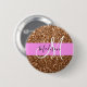 Glam och giftig rosa och brons glitter gnistor, vit monogram namn och initialknapp. Ditt eget namn och monogram är skrivna i ett skript med elegant och rosa bakgrund. Du kan ändra texten färg och teckensnittet stil och storlekt med hjälp av anpassningsalternativet. En perfekt födelsedag eller julklapp!