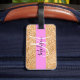 Glam och giftig rosa och koppar-glitter-gnistor, vit monogram namn och första bagagetaggen. Ditt eget namn och monogram är skrivna i ett skript med elegant och rosa bakgrund. Du kan ändra texten färg och teckensnittet stil och storlekt med hjälp av anpassningsalternativet. En perfekt födelsedag eller julklapp!