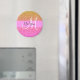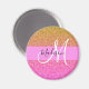 Girly och glam shock rosa och orange, gult, guld sjöjungfru glitter är gnistor i gradientgradienten namn och initial magnet. Ditt eget namn och monogram är skrivna i ett skript med elegant och rosa bakgrund. En perfekt födelsedag eller julklapp!