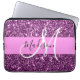 Glam lila glitter gnister vita monogrammet namn och första laptop sleeve. Ditt eget namn och monogram är skrivna i ett skript med elegant och rosa bakgrund. Du kan ändra texten färg och teckensnittet stil och storlekt med hjälp av anpassningsalternativet. En perfekt födelsedag eller julklapp!