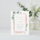 Denna chic inbjudan vykort är fantastisk för alla som planerar en middag i en elegant blomstil. Detta vackra målade inbjudningskort visas i subtilt grönt med vacker mjuk thulian rosa penseldrag med strukturfärg på en mjuk vit bakgrund. Detta inbjudningskort är omgivet av rosa penseldrag och gröna kvistar. Era fests detaljer visas i handskriven typsnittsbokstäver. De är perfekta för det konstnärliga paret. Anpassning är enkelhet i sig för att göra dem unikt era egna. Vi är glada att få vara en del av er speciella fest.
