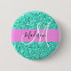 Glam Rosa och Aqua Glitter Sparkles Monogram Namn Knapp