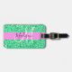 Glam Rosa och Grönt Glitter Sparkles Monogram Namn Bagagebricka