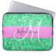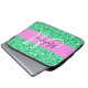 Glam och giftig rosa och grönt glitter är vita monogram namn och första laptop sleeve. Ditt eget namn och monogram är skrivna i ett skript med elegant och rosa bakgrund. Du kan ändra texten färg och teckensnittet stil och storlekt med hjälp av anpassningsalternativet. En perfekt födelsedag eller julklapp!