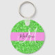 Glam och giftig rosa och grönt glitter gnister vita monogrammet namn och inledande nyckelkedja. Ditt eget namn och monogram är skrivna i ett skript med elegant och rosa bakgrund. Du kan ändra texten färg och teckensnittet stil och storlekt med hjälp av anpassningsalternativet. En perfekt födelsedag eller julklapp!