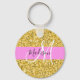 Glam Rosa och Guld Glitter Sparkles Monogram Namn Nyckelring