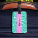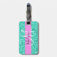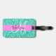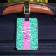 Glam och giftig rosa och turkos glitter-gnistor, vit monogram namn och första bagagetaggen. Ditt eget namn och monogram är skrivna i ett skript med elegant och rosa bakgrund. Du kan ändra texten färg och teckensnittet stil och storlekt med hjälp av anpassningsalternativet. En perfekt födelsedag eller julklapp!