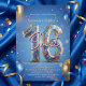 Royal Blue and Gold Glitter Balloon Sweet 16Designad av Kristina Lj Petrovska