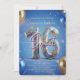Glam Royal Blue Gold Balloons Sweet 16 Birthday Inbjudningar