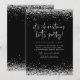 Glam Silver Glitter Det är julklappens svarta gnistra i Party för ert möte i Helgdag med silver faux glitter vid överkanten och grund kant på båda sidor och ett handskrivet stil-skript för huvudrubrikens typografi på en klassvis svart bakgrund med vit typografi. Anpassa enkelt resten av texten till dina egna detaljer.