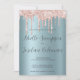 Glam teal ro guld glitter-droppskript bröllop inbjudningar