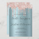 En elegant teal och ro guld glitter dropp med en handskriven kalligrafi lyxbröllopsinbjudan. Den här krävande snyggten som bländar det geometriska trendiget är perfekt för trendiget och snyggten eller vem som helst. Anpassa den här designen med egen information om meddelande och personlig. Alla designer skrivs ut.