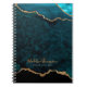 Glam Teal Velvet Agate Geode Guld skript Anteckningsbok