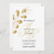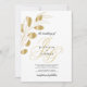 En chic guld monogram initialer med snyggt elegant vit och guld löv blommigt bröllopsinbjudningar. Den här enkla inbjudan till bröllop i guld är perfekt för alla sofistikerade flickor. Den här designen är perfekt för en händelse i trendig och elegant party. Anpassa den här designen med information om meddelande och personlig. Alla designer skrivs ut.