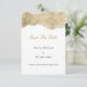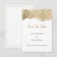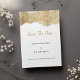 En inbjudan till lyxen bröllop spara datum i elegant, guld och glitter är perfektens utformning för att komplettera en klassmedveten och sofistikerad händelse. Den har gnistra guld och silver med enkel och elegant guld och svart typografi på vit bakgrund. Den här traditionella, unika och klassiska designen kommer att imponera på alla dina gäster. Alla designer skrivs ut.