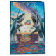 Gör din gåva oförglömlig med vår Glamor Chomp-hajmatade presentväska, med ett konstnärligt verk av Matt Chase Morelan! Den här djärva designen visar två hajar som brinner upp från havet, som öppnar käkarna, och som siktar på en stor glansig gems mot en vibrerande solnedgång. Perfekt för födelsedagar, strand party, haj älskare och oceanentusiaster, lägger denna unika presentsäck till stänk i äventyr och stil till vilken firande som helst. Slå ihop dina gåvor med häftig havsenergi och oförglömligt mjöl!