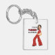 Snyggt och modig kvinna med mörk hår och röd dräkt på vit bakgrund