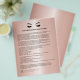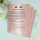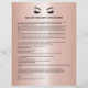 Samtyckesformulär för ögonfransförlängning är perfekta för ditt ögonfransföretag. Denna moderna och sofistikerade design för samtyckesformulär har en glamourös, minimalistisk illustration av en kvinnas ögonfransar med roseguld ögonskugga, en titel och ett block där du kan infoga alla detaljer om ditt informerade samtycke på en lyxig metallisk roseguld bakgrund.
