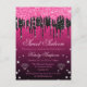 Glamorös svart & rosa droppande glitter på mörk rosa gradientbakgrund med diamanter och konfetti