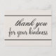Denna eleganta tack-vykortdesign har meddelandet "tack för din vänlighet" på framsidan, tillsammans med ett anpassat meddelande på baksidan. Det kan användas för att visa uppskattning till någon som har gjort en speciell insats.