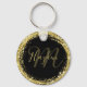 Glamoröst Guld Glitter Monogram Namn Svart Nyckelring