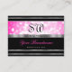 Glamorous Black Girly Pink Glitter Initials Silver Visitkort