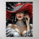 A dazzling digital illustration of a sophisticated woman wearing an oversized, glittering red hat and luxurious diamond jewelry against a starry background. Perfect for fashion lovers and adding a touch of glamour.