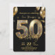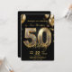 Glamorous Sparkly Black and Gold 50th Birthday Inbjudningar