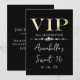 Denna anpassade festinbjudan har en glamourös VIP-design på svart bakgrund. VIP-titeln är tryckt i en guldpräglad font, följt av evenemangstiteln. Ett band av diamanter skiljer texten åt. Plats och tid för festen eller evenemanget är tryckt på baksidan. Det är perfekt för en födelsedagsfest, sweet 16, bröllopsfest eller annan elegant firande.