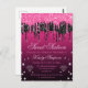 Glamourös svart & rosa droppande glitter Sweet 16 Vykort