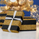 Glamoursvartrandar med utskrivavet guld- glitter presentpapper