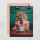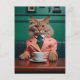 Glamorös bengalkatt i ett drickkaffe i finare rosa kostym i pub