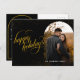 Det här helgdag för elegant har en glamorös design med en liten gnistra. Bilden visas i en vacker gyllene båge som ställs mot en svart bakgrund i riken som är försedd med delikat guld glitter. Hälsningen "Glad helg" är skrivet i ett snyggt, även i guld, och lägger till en aning elegans och fesktivitet. Kortets baksida fortsätter det glamorösa temat med en svart och guld-design och ett hjärtskärpt budskap som betonar vikten av vardagsmat. Den övergripande utformningen är sofistikerad och tidlös. skapar det vara ett val för par att välja perfekt och söka ett unikt helgdag för snyggt som ska skickas till familj och vänner.