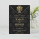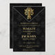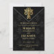 Elegant och snyggt Bröllopinbjudan på kvällen Chic satte på en mönstrad svart bakgrund med guld emblem.