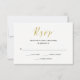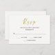 Det här fantastiska bröllopet OSA-kortet har faux guld-kalligrafi tillsammans med modern svart text, på en elegant vit bakgrund. Perfekt för ett formellt, traditionellt bröllop med modern centrifugering! Observera att detta kort inte innehåller egentlig guld-folie; guld-effekten trycks digitalt på.