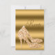 OSA kort för personlig av elegant för födelsedagsfester som dekoreras med klasssnåla högklackar med stilettos-skor av guld, bilder och anpassningsbar, chic glitzy, snyggt, sparkler, digitala diamanter och vitjuller glitter tryckt musik noter på en glamorös bilder-gradientbakgrund med vågigt effekt. Dessa sötter, trendig, roligt, moderna OSOR för tillfällen dekoreras/trycks på båda sidor. Finare OSAS perfekt för tillfällen är sofistikerad. På baksidan av kortet finns vackra pärlor och snöre-matbild. Pearls and snöre mat by ©Hazel Kinvig-Paul www.design-a-dream.co.uk