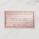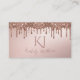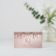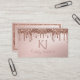 Det här affärskortet för snyggt har en glamorös, gigantisk, ro guld-färgad med en foil struktur-design. Glitter-sekvenserna droppar över den översta delen. Monogram initialer placeras under glitter, följt av ett exempel på namn som skrivs ut i ett typsnitt av eleganten. På baksidan av affärskortet finns kontaktinformation med ram i ro guld glitter.